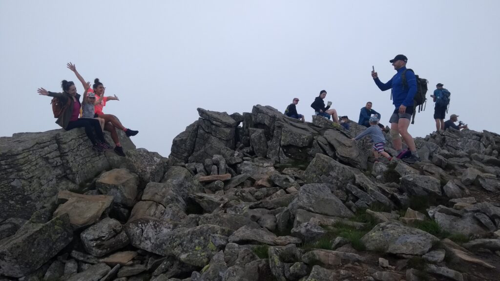 Warunki na szczycie Babiej Góry nie często w pełni sprzyjają. Mówi się o wietrze, który dmucha tam przez większość roku. Z początku lipca br. wiatru nie było, ale chmura, która wisiała nad masywem, nakryła szczyt, ochładzając temperaturę na nim o dobrych kilka stopni. Mimo tych niesprzyjających warunków na szczycie korony Beskidów tłumy turystów! Była sobota w południe, ale tak dużego zainteresowania, jakie miał szlak na Babią Górę tego dnia się nie spodziewałem.