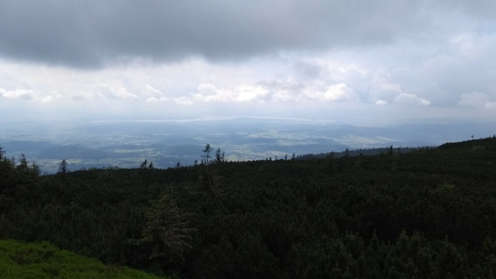 Na szczycie i tak było przyjemnie. Patrząc na Słowację, wciąż można było zobaczyć całe Jezioro Orawskie, a także grę cieni tworzonych przez chmury. Z drugiej strony krajobrazu polskich Beskidów niestety nie było widać, ale i tak było przyjemnie popatrzeć na kotłujące się tuż przez oczami chmury.
